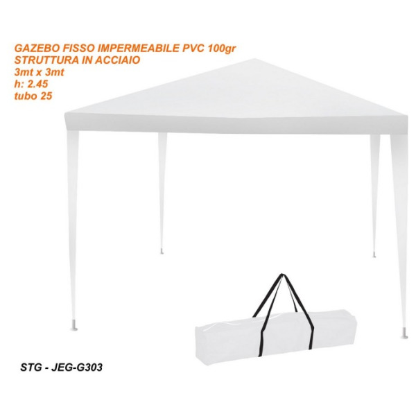 Gazebo fisso impermeabile pvc struttura acciaio 3x3 m h2,45m tubo 25 tessuto in pvc 100 g
