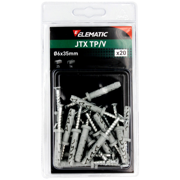 Elematic blister tassello jtx tp/v 6x35 c/vite 20 pz - Ordine minimo 10 pezzi