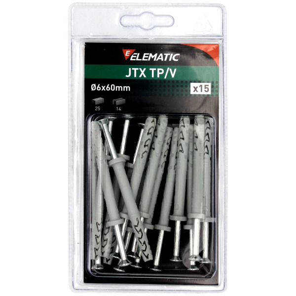 Elematic blister tassello jtx tp/v 6x60 c/vite 15 pz - Ordine minimo 8 pezzi