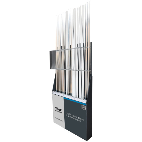 Espositore profili allu.argento 14x15 pezzi