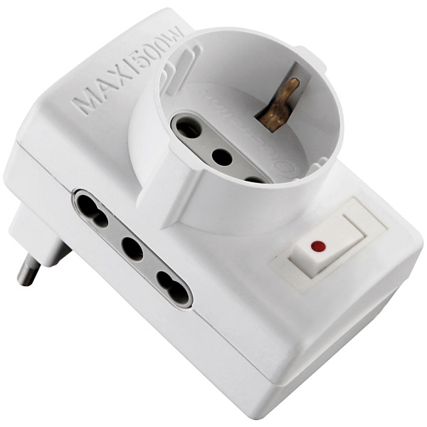 Adattatore 10/a 2pr bip +1 schuko c/inter sicurez