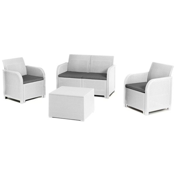 Salotto resina nebraska 2 4 pz c/cuscini bianco