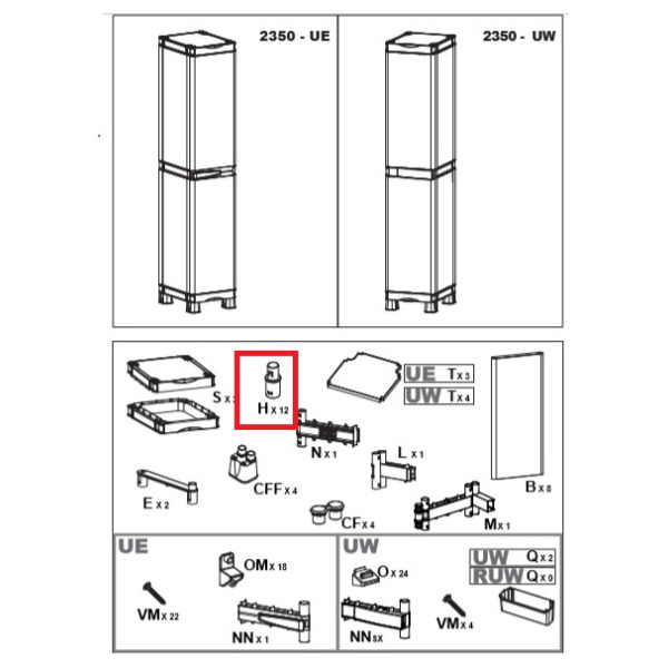 Zz-supporto h x armadio terry wave 1a 2350ruw - Ordine minimo 0 pezzi