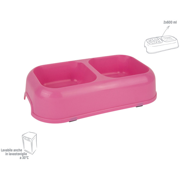 Zoov ciotola doppia rettangolare rosa large - Ordine minimo 6 pezzi