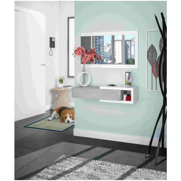 Kit ingresso 1 cassetto + speccho noon bianco cemento