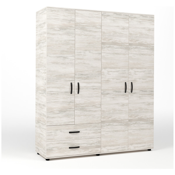 Kit armadio 4 ante + 2 cassetti 160x52x205 cm bianco ven.k083