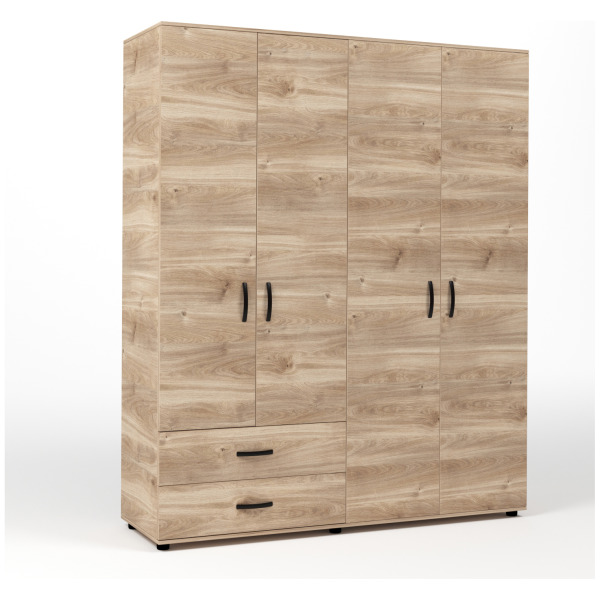 Kit armadio 4 ante + 2 cassetti 160x52x205 cm rovere m. k358