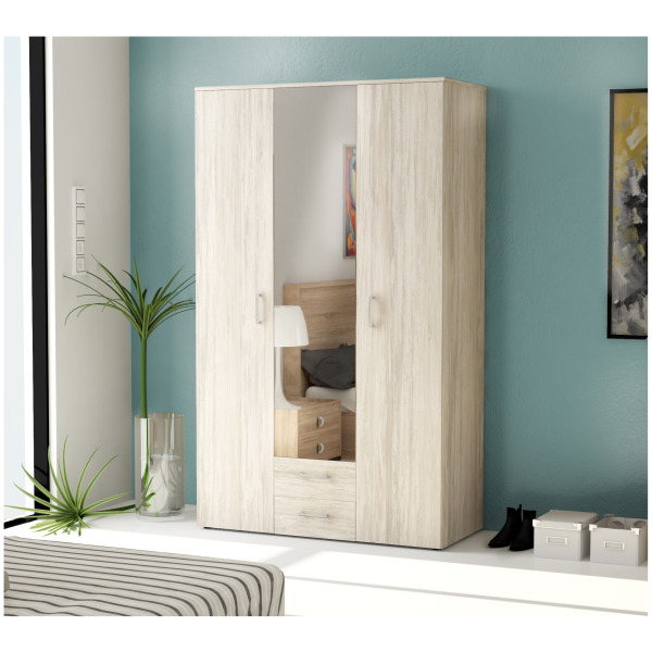 Kit armadio 3 ante + 2 cassetti specchio 120x52x200 bian/ven.k083