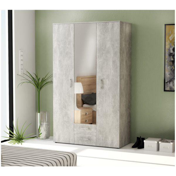 Kit armadio 3 ante + 2 cassetti specchio 121x54x200 cem. k4298