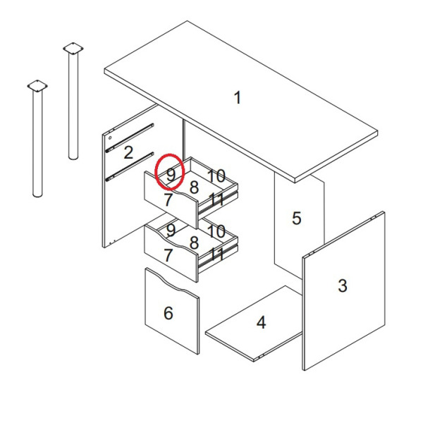 Zz-laterale cassetto nr.9 x kit scrivania athena cm.138x60x74h bianco