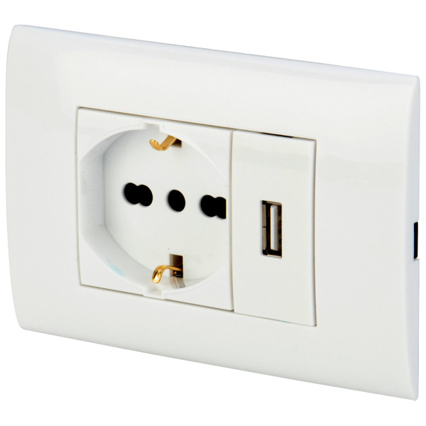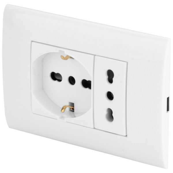 Polypool pp6096x placca+supp+pr usb+pr bip schu bco