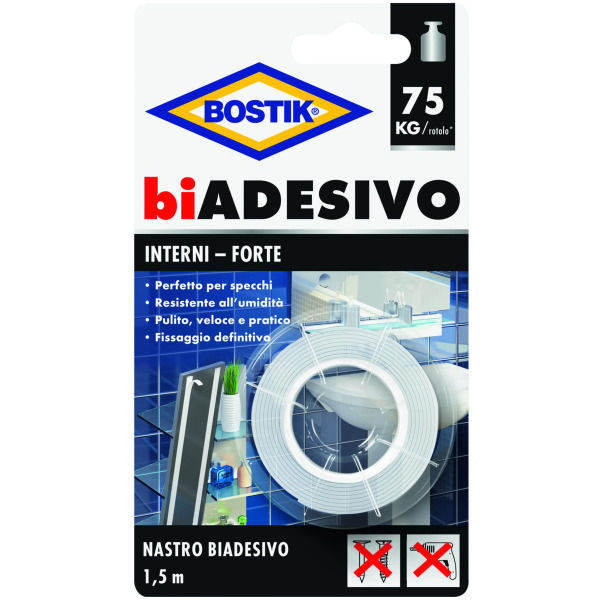 Bostik nastro biadesivo interni 19mmx1,5m blister - Ordine minimo 6 pezzi