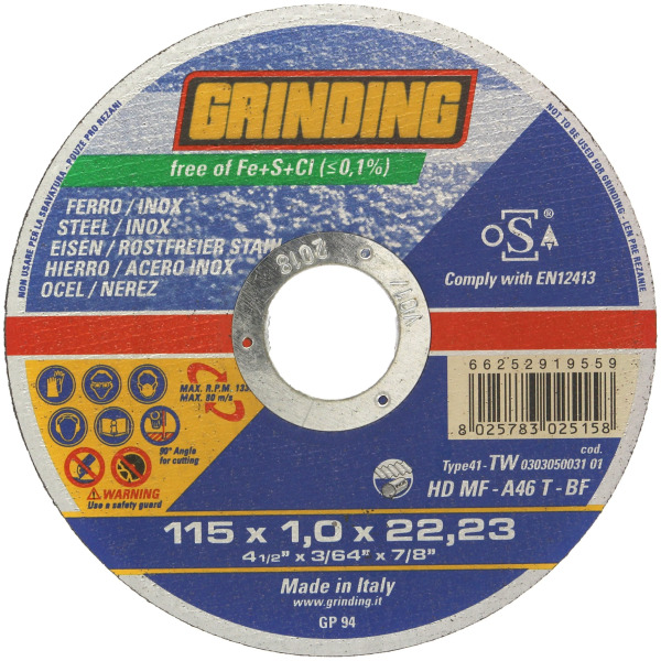 Grinding disco ferro 115x1,0 hdmf - Ordine minimo 10 pezzi