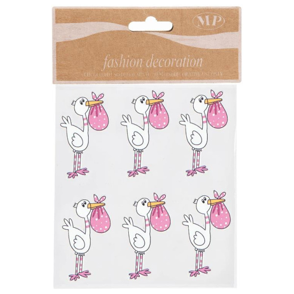 Cicogna legno stickers 5x3 cm (6pz) pink