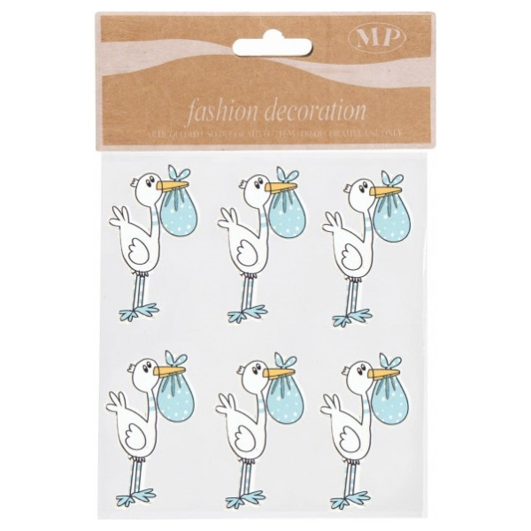 Cicogna legno stickers 5x3 cm (6pz) sky blue
