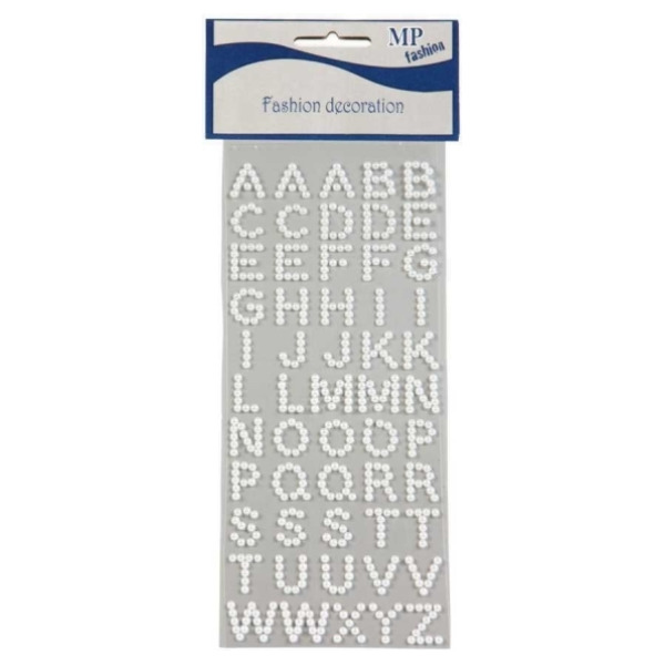 Lettere perle stickers 55 pz cm 9,1x25 white