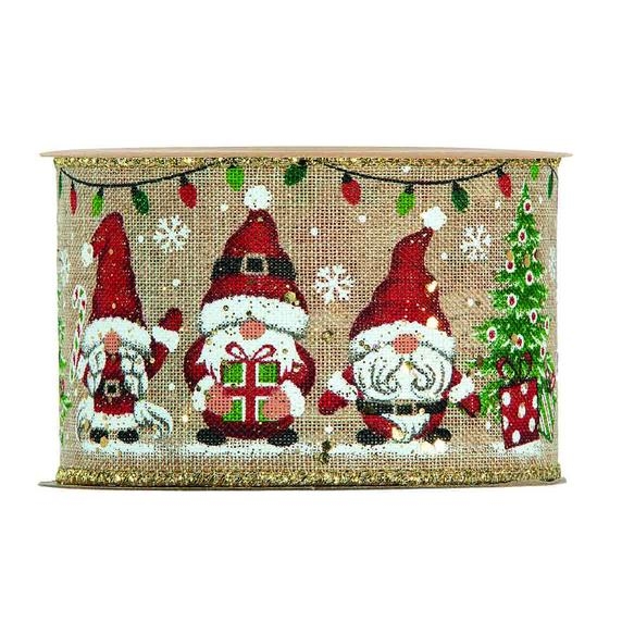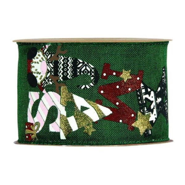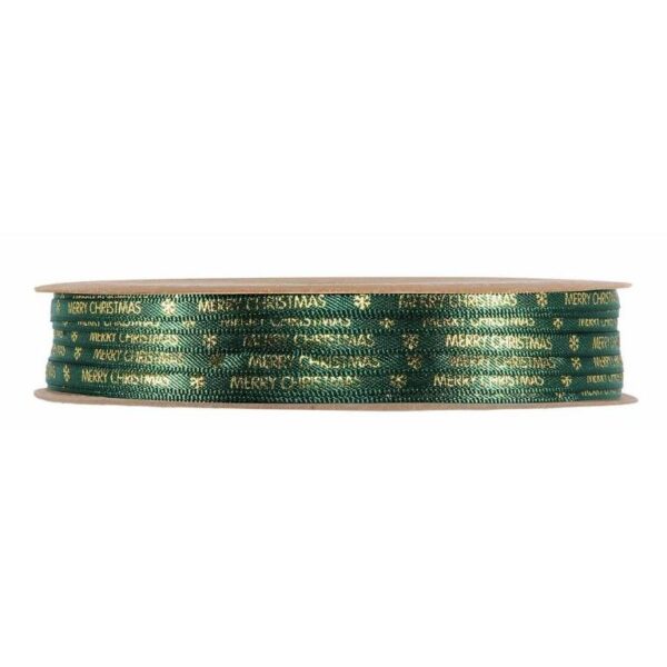 Nastro Merry Christmas verde con Elfi mm63x10mt
