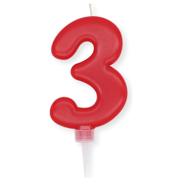 Numero 3 di cera plump rosso cm.10