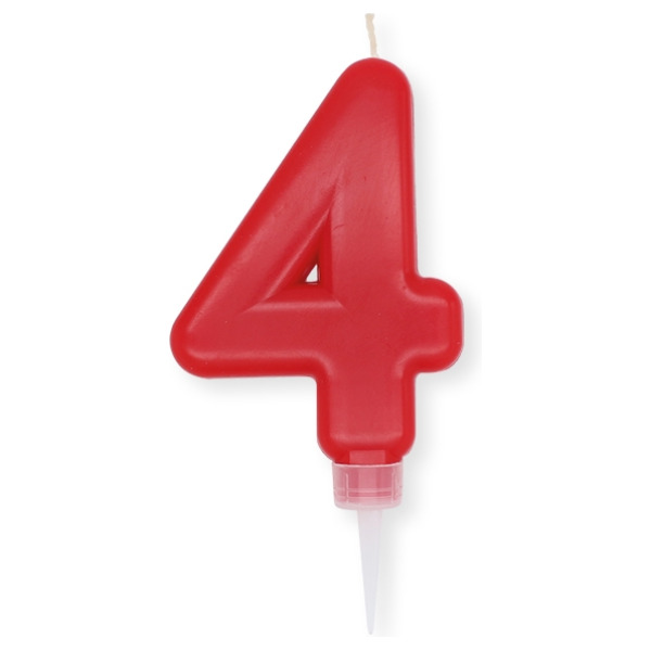 Numero 4 di cera plump rosso cm.10