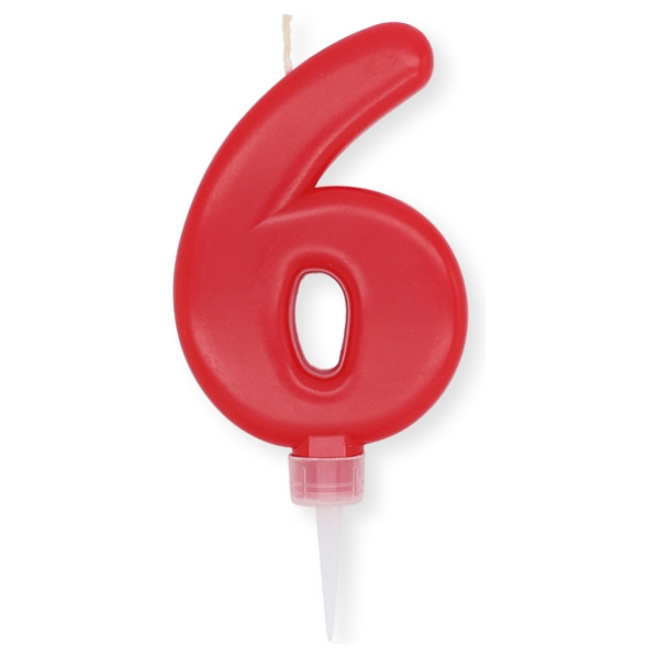 Numero 6 di cera plump rosso cm.10