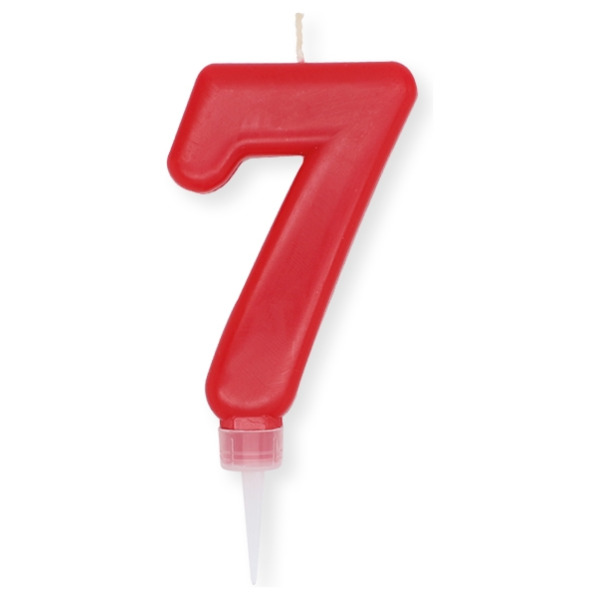 Numero 7 di cera plump rosso cm.10