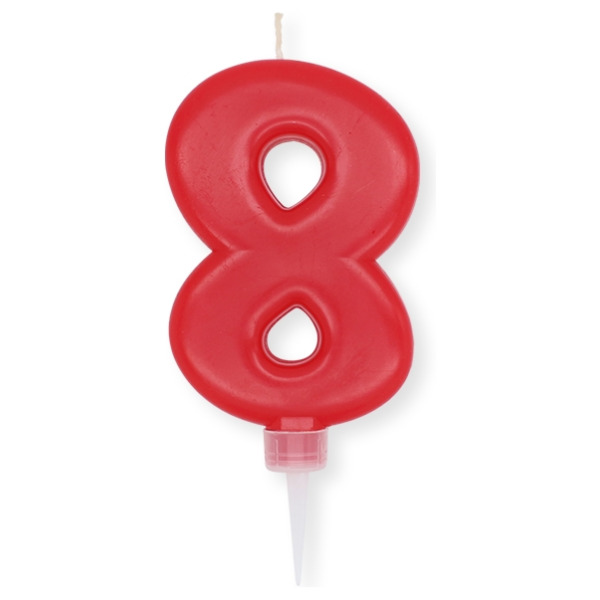 Numero 8 di cera plump rosso cm.10