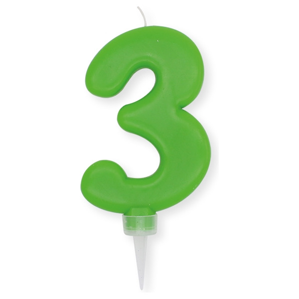 Numero 3 di cera plump mela verde cm.10