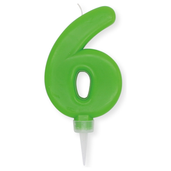 Numero 6 di cera plump mela verde cm.10