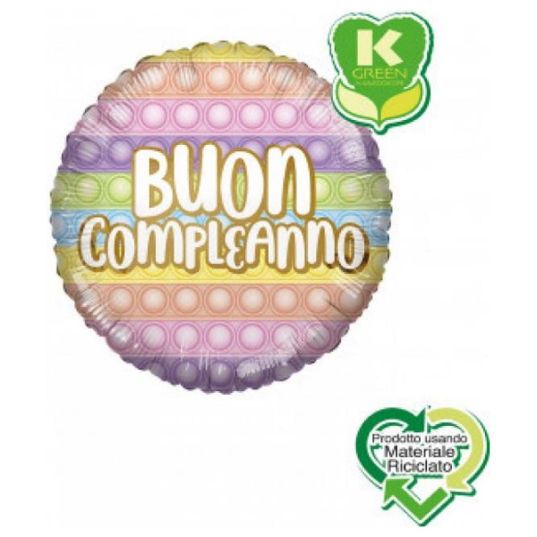 Pallone mylar buon compleanno macaron pop it k-green tondo 18''