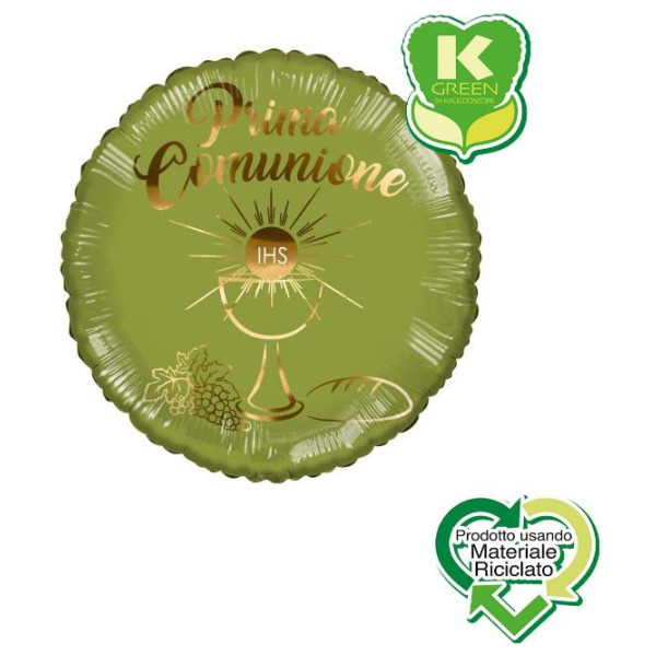Pallone mylar prima comunione verde oliva tondo k-green 18''