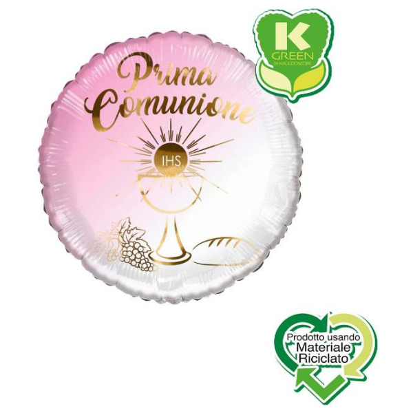 Pallone mylar prima comunione rosa tondo k-green 18''