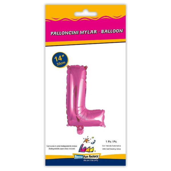Palloncino mylar lettera l fuxia mini 14''-35 cm con valvola