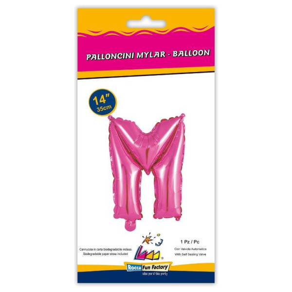 Palloncino mylar lettera m fuxia mini 14''-35 cm con valvola