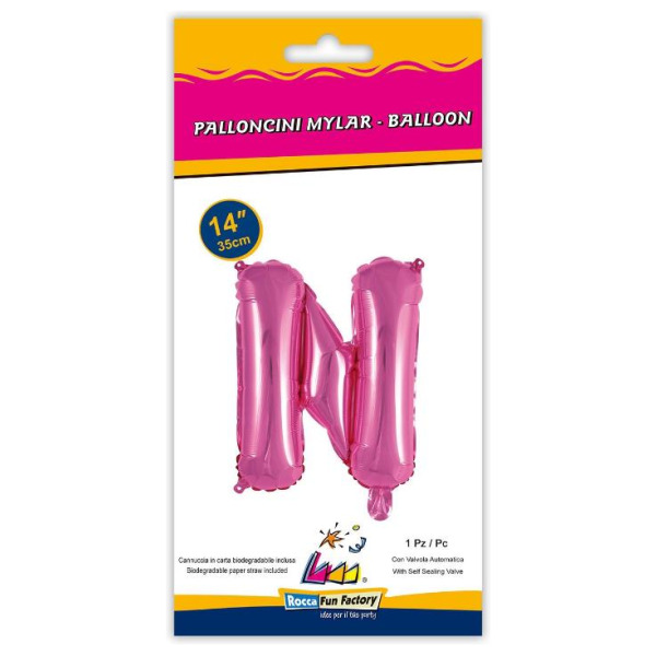 Palloncino mylar lettera n fuxia mini 14''-35 cm con valvola