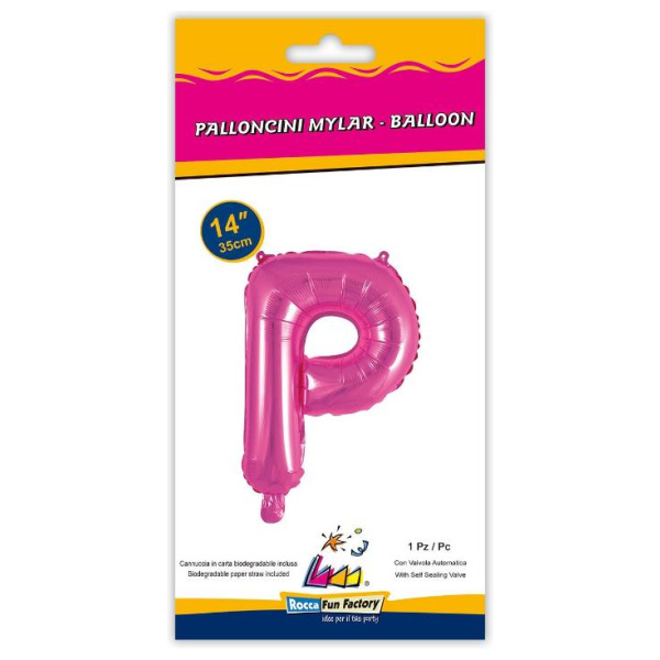 Palloncino mylar lettera p fuxia mini 14''-35 cm con valvola