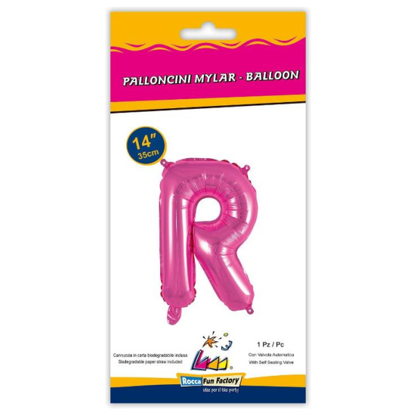 Palloncino mylar lettera r fuxia mini 14''-35 cm con valvola