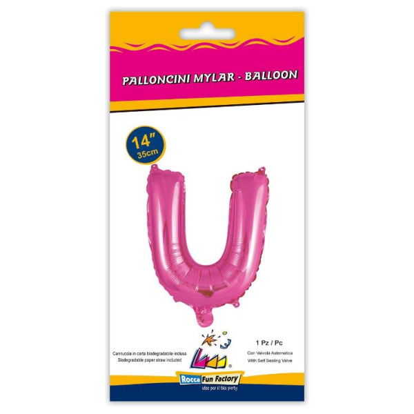 Palloncino mylar lettera u fuxia mini 14''-35 cm con valvola