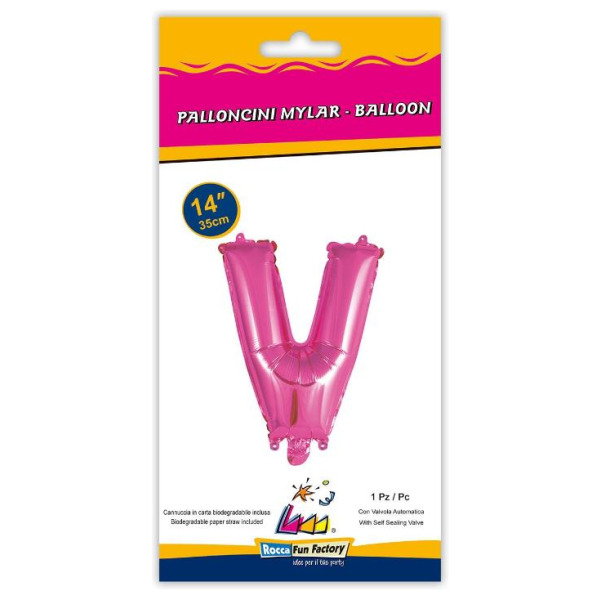 Palloncino mylar lettera v fuxia mini 14''-35 cm con valvola