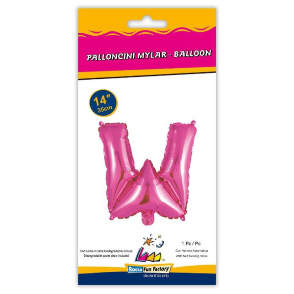 Palloncino mylar lettera w fuxia mini 14''-35 cm con valvola