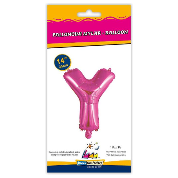 Palloncino mylar lettera y fuxia mini 14''-35 cm con valvola