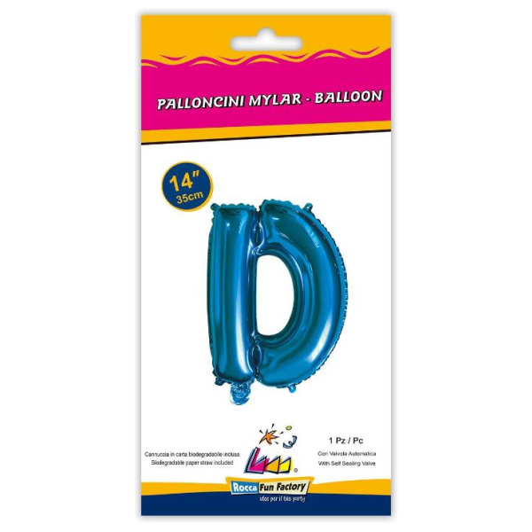 Palloncino mylar lettera d blu mini 14''-35 cm con valvola