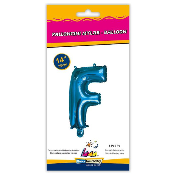 Palloncino mylar lettera f blu mini 14''-35 cm con valvola