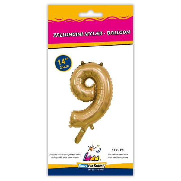 Pallone mylar numero 9 oro mini 14''-35 cm con valvola