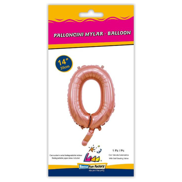 Pallone mylar numero 0 rosa gold mini 14''-35 cm con valvola