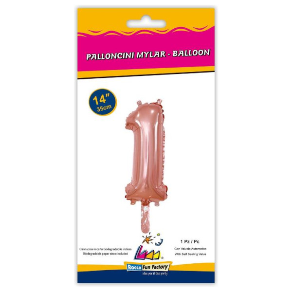 Pallone mylar numero 1 rosa gold mini 14''-35 cm con valvola