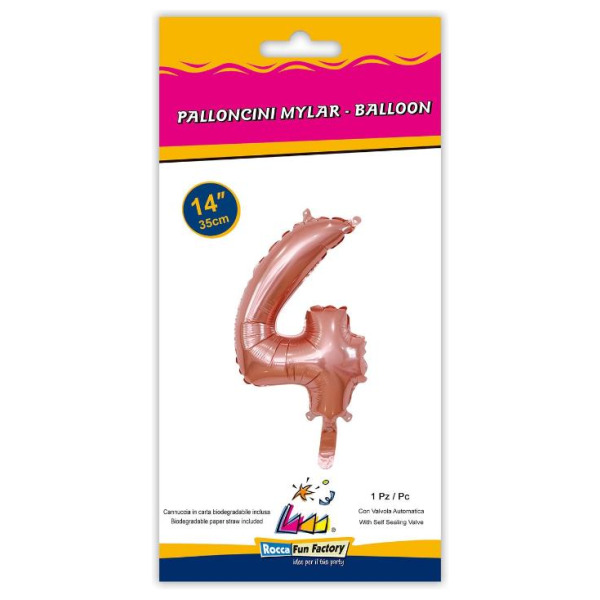 Pallone mylar numero 4 rosa gold mini 14''-35 cm con valvola