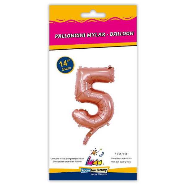Pallone mylar numero 5 rosa gold mini 14''-35 cm con valvola