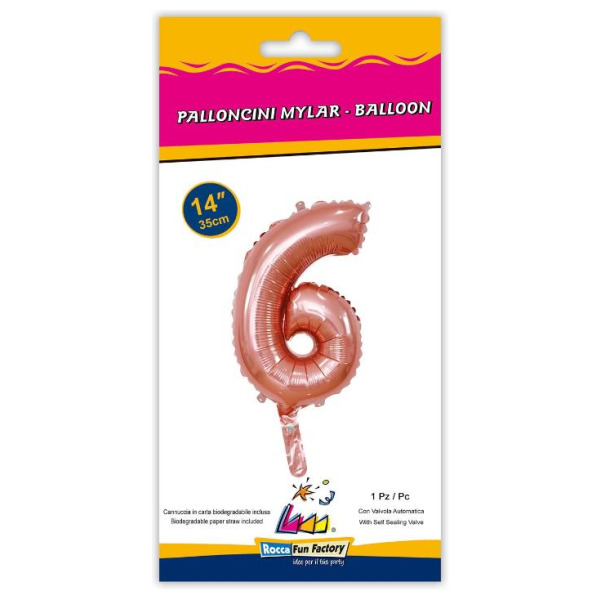 Pallone mylar numero 6 rosa gold mini 14''-35 cm con valvola