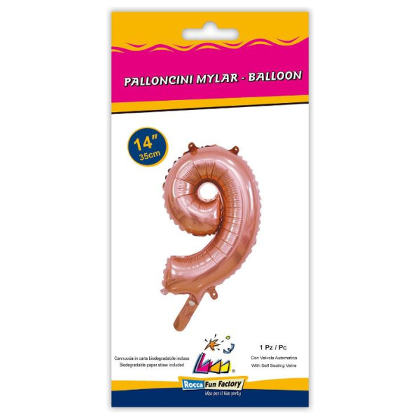 Pallone mylar numero 9 rosa gold mini 14''-35 cm con valvola