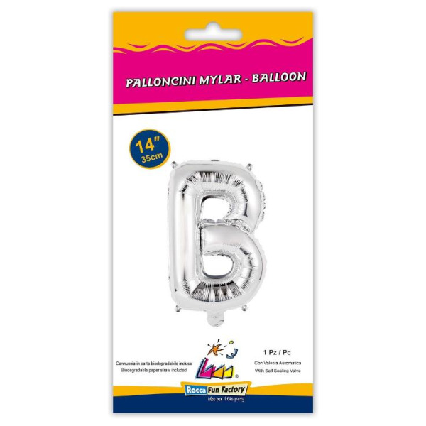 Palloncino mylar lettera b argento mini 14''-35 cm con valvola
